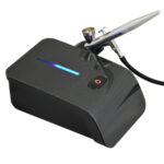 AIRBRUSH KOMPRESSOR SET: Mini-Airbrush-Kompressor CARRY IV-TC mit SENSOR-TOUCH-CONTROL, 5-POWER-STUFEN-Kompressor-Leistung,(max. Druck 1,7 bar, max. Luftabgabemenge: 10 l/min, Motorleistung: 12V10W) LED-Anzeige und der Airbrush-Pistole “Gravity Single-Action-Gun 208 D 0,4”