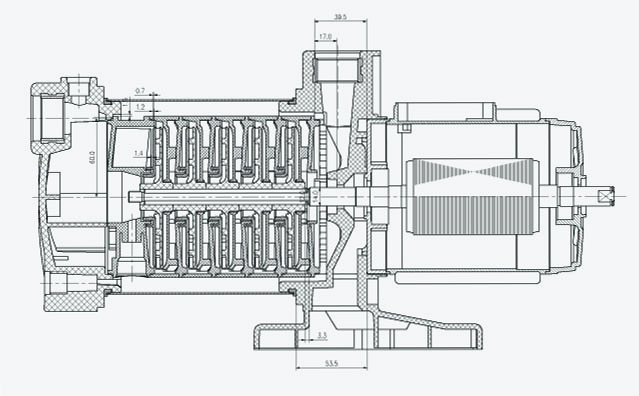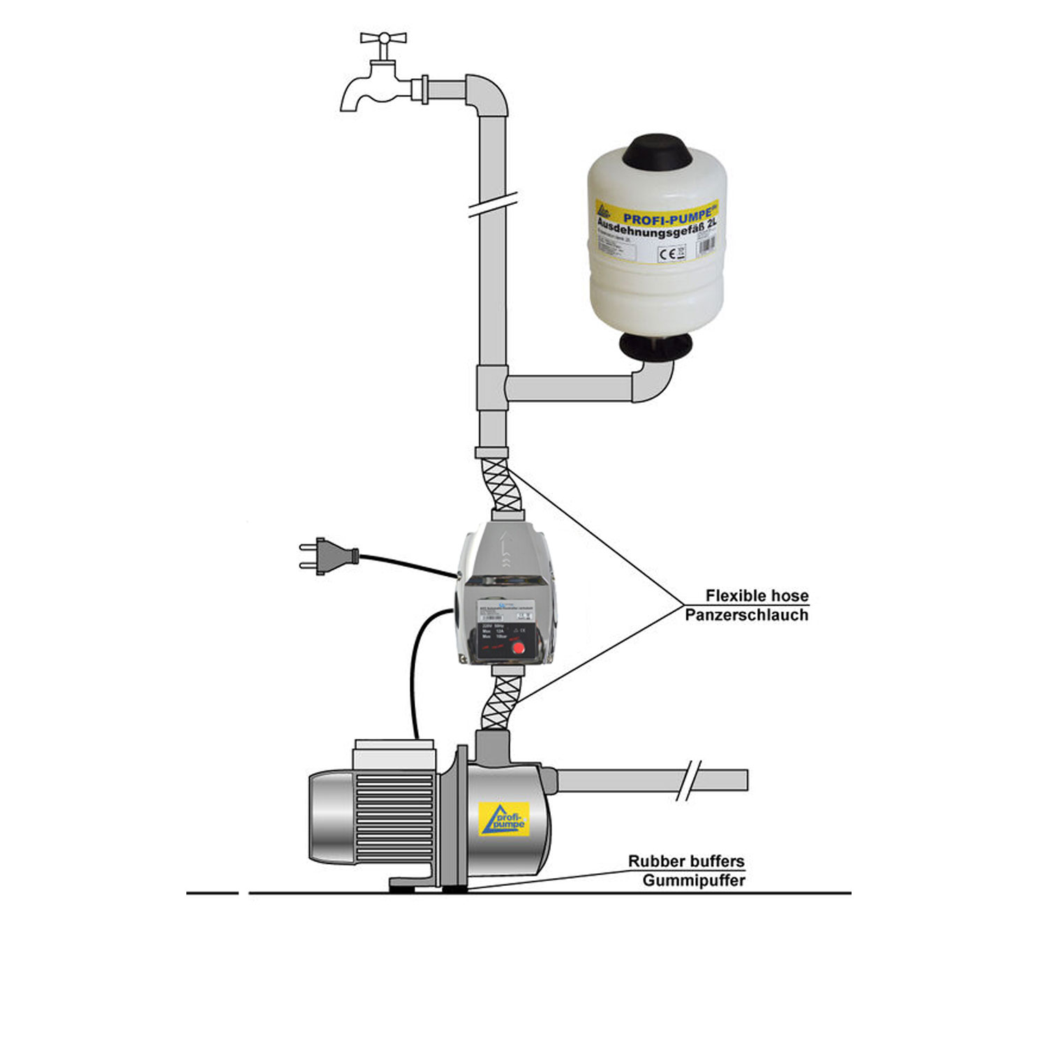 • fünfstufige Kreiselpumpe mit 5,6 bar Förderdruck und 5400 l/h Fördermenge