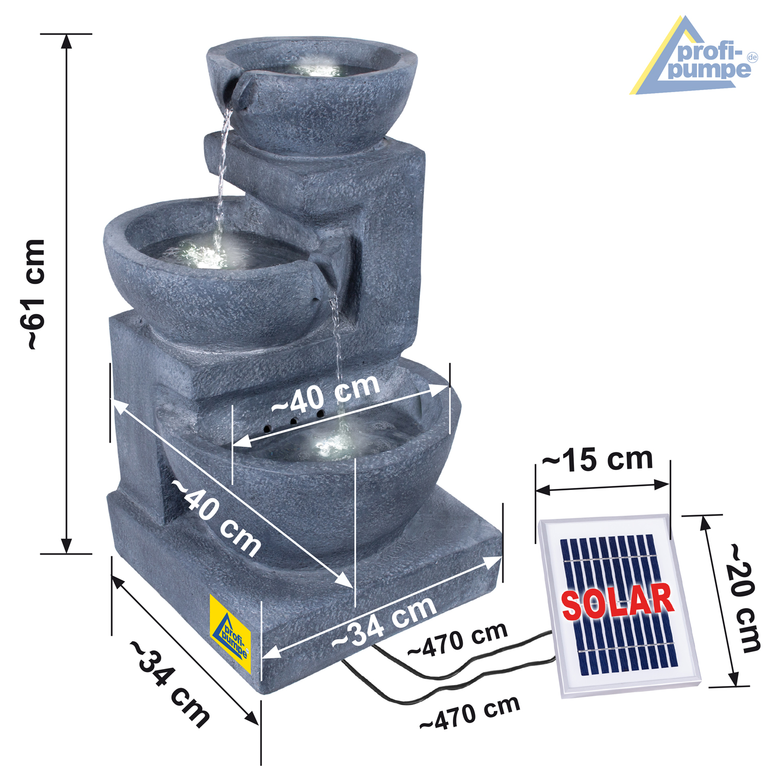 Solar Gartenbrunnen GRANITSCHALEN-KASKADE-5 mit LED-Licht und Li-Ion-Akku