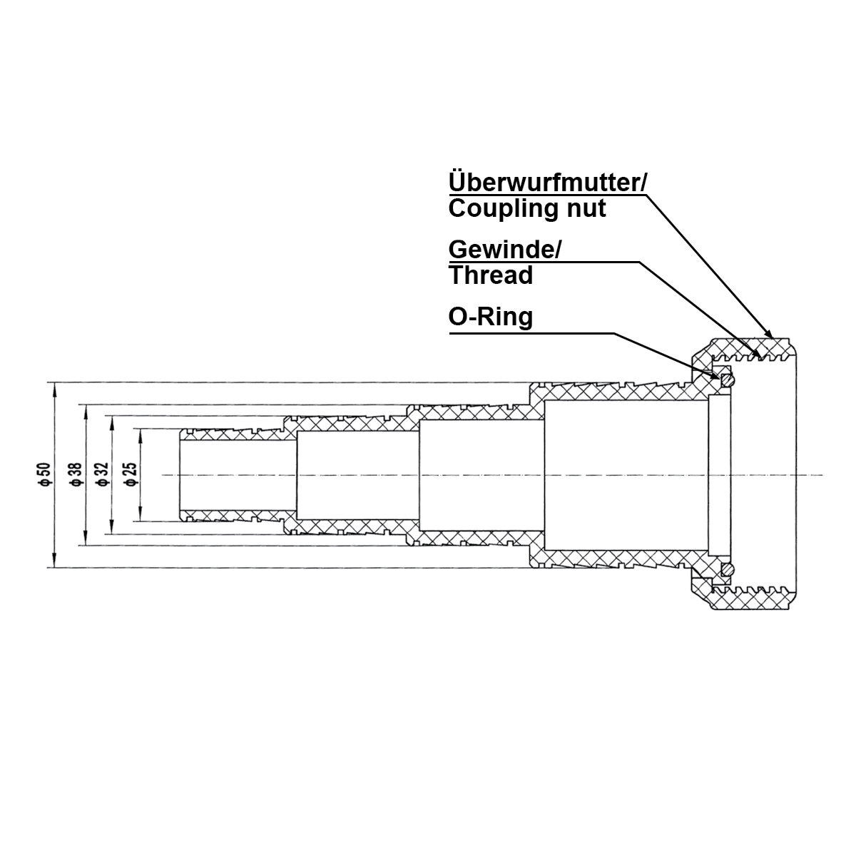 Die Stufenschlauchtülle dient als Adapter für vier verschiedene Schlauch-Größen: