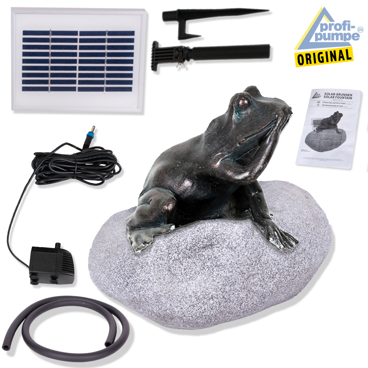 • 1 Stk. Solar-Brunnen Set MÄRCHEN-FROSCH auf einem Stein