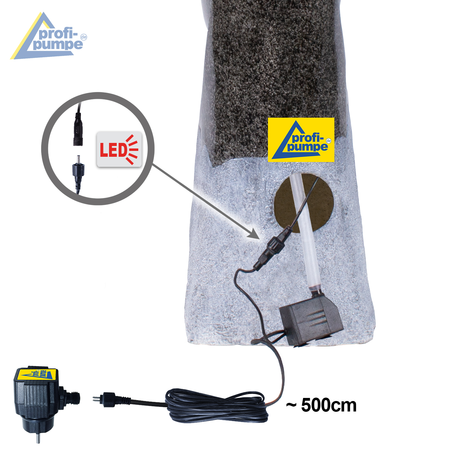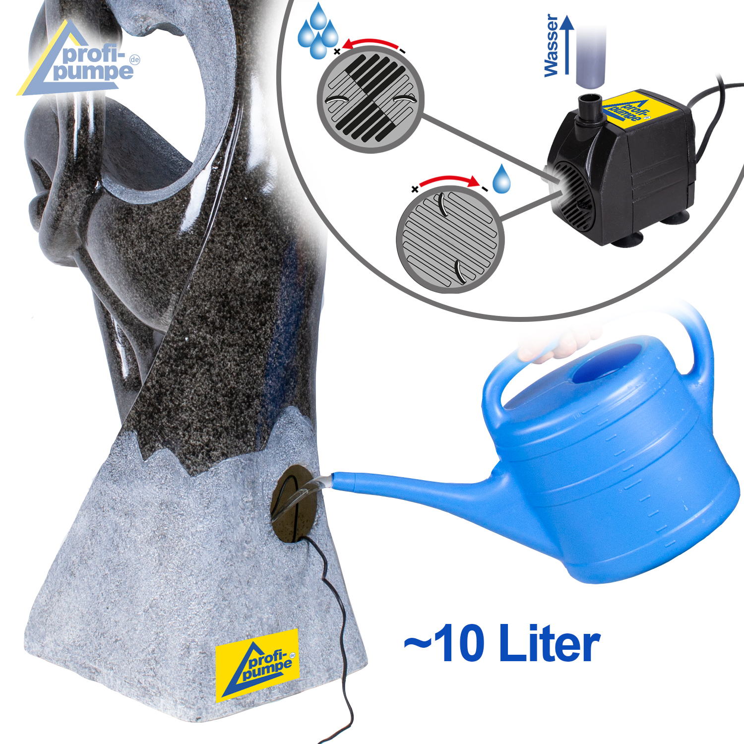 Der Wasserbrunnen ist für den 230-Volt-Betrieb vorgesehen. Die Pumpe und die LEDs werden mit sicherer 12V-Niederspannung betrieben (Adapter im Lieferumfang enthalten). Alle Kabelverbindungen sind verpolungssicher, wasserdicht und absolut funktionssicher. Dank praktischer Steckverbindungen sind alle Komponenten jederzeit austauschbar. So können Sie den Wasserbrunnen mit der effektvollen LED-Beleuchtung und das fließende Wasser jahrelang genießen!