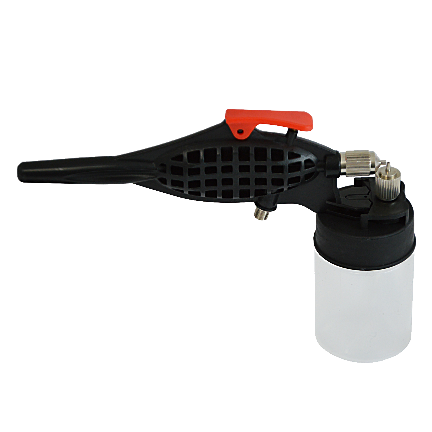 Die Airbrushpistole hat einen Arbeitdruck von 15-50 ps. Die Düsengröße (Stahldüse!) beträgt 0,50 mm.