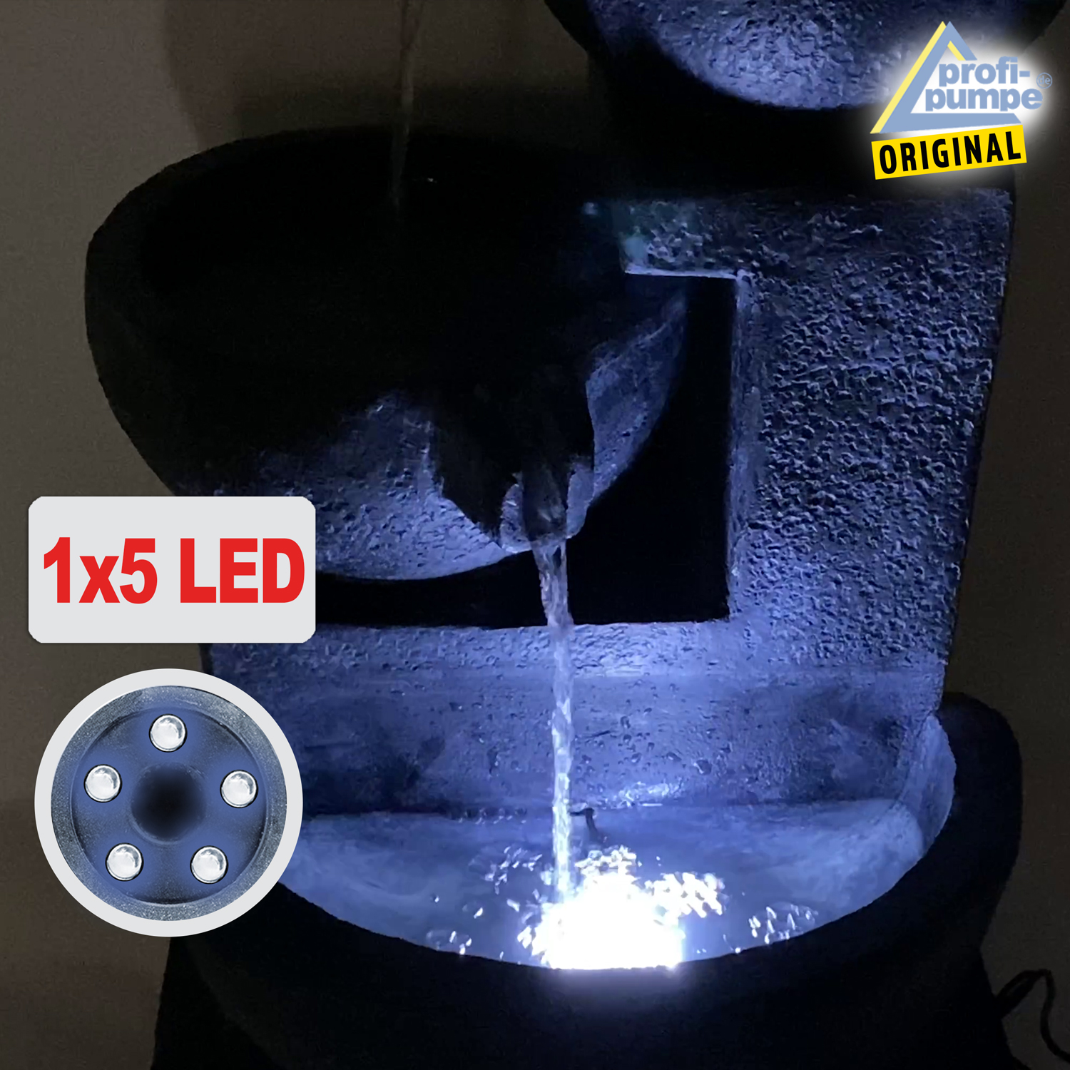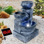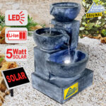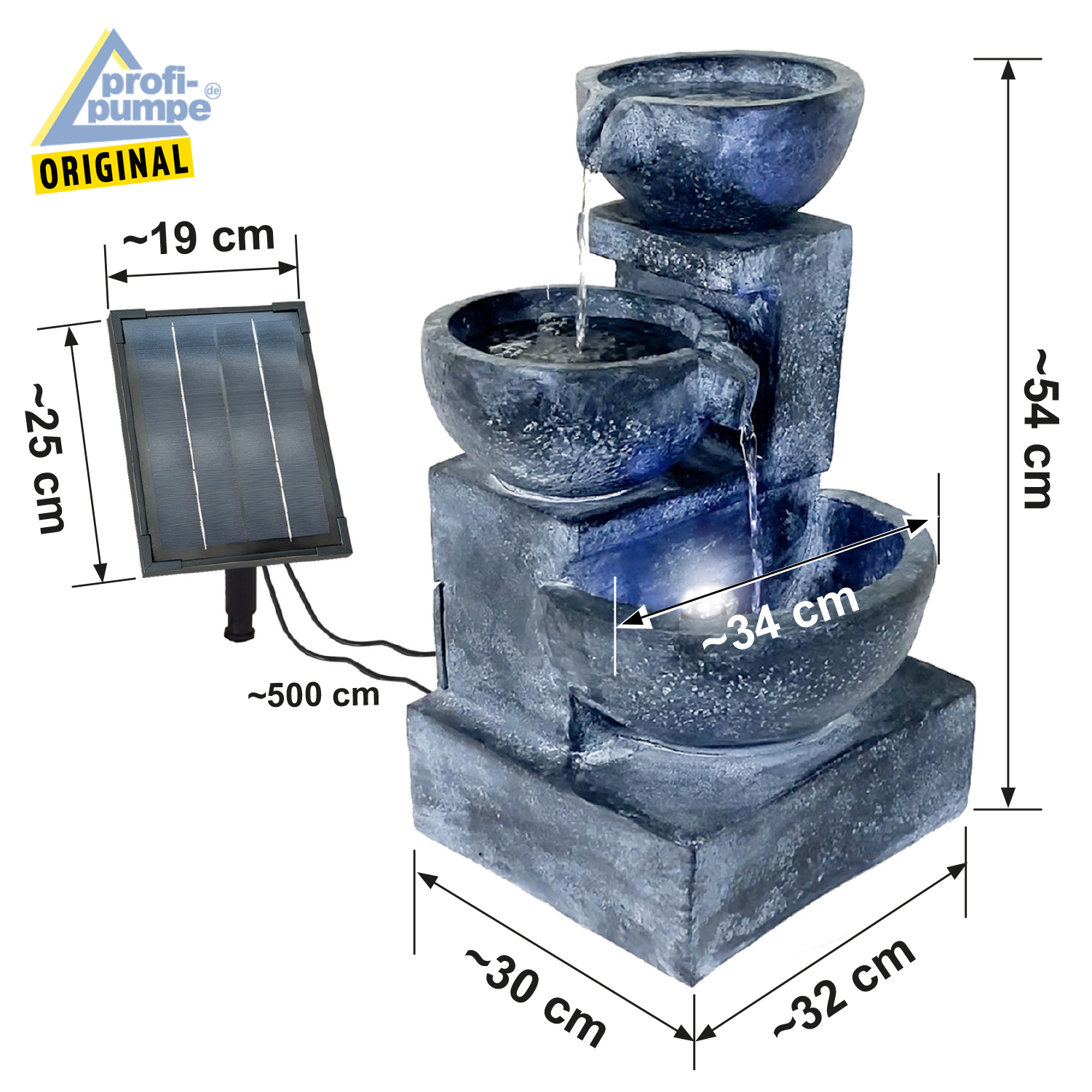 Solar-Brunnen “”GRANITSCHALEN-KASKADE-3″” mit Li-Ion-Akku und LED-Licht