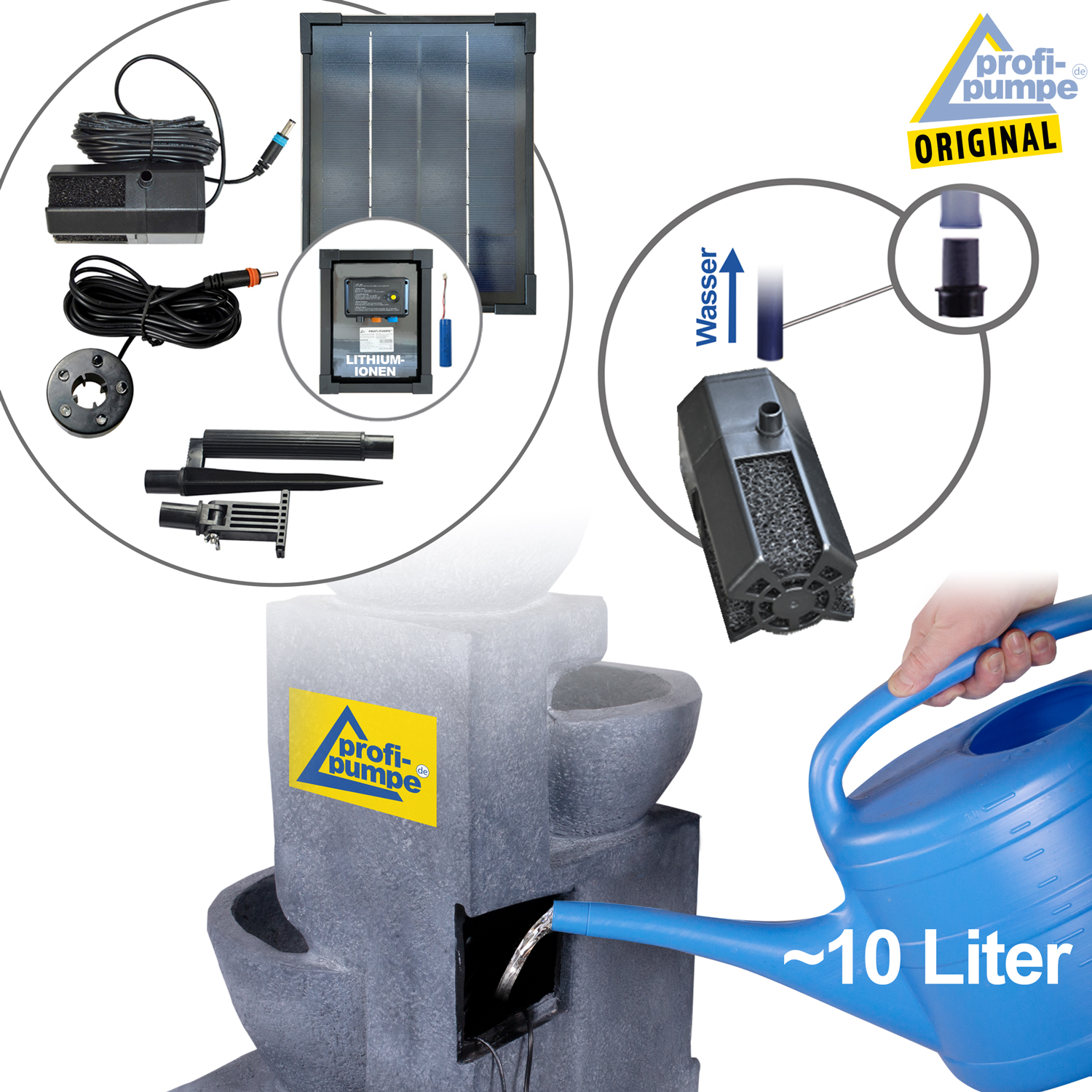 - Solarbetriebener Garten-Brunnen mit 5W Solarpanel und Li-Ion-Akku