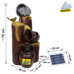 Das Solar-Wasserspiel “Baumstumpf & Tonkrüge-3”setzt die Kraft der Sonne in fließendes Wasser um. Hochwertige Komponenten bringen das Wasser in Bewegung, sobald das Sonnenlicht die Solarfläche erreicht. Je stärker die Sonne, umso intensiver wird das Wasserspiel! Das beruhigende Rauschen des Wassers gibt jedem Teich eine besondere Note und das im Sonnenlicht funkelnde Wasser ist stets der perfekte Blickfang. Fließendes Wasser sorgt für noch mehr Wohlgefühl in Ihrem Garten und sorgt für ein angenehmes Mikroklima an heißen Sommertagen.