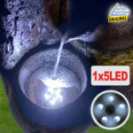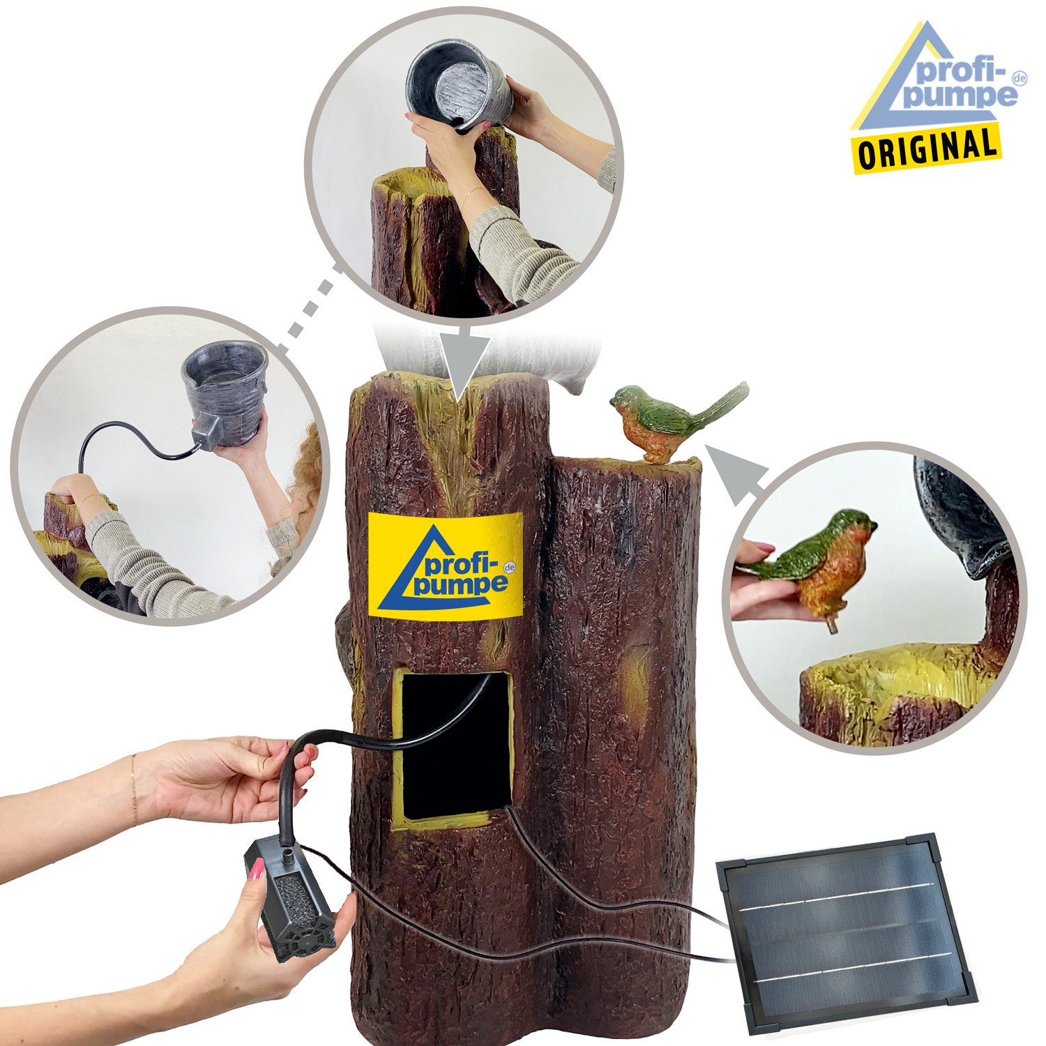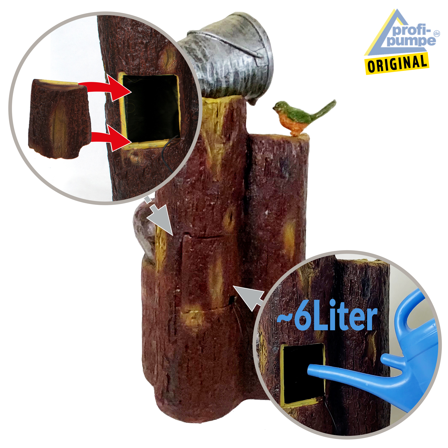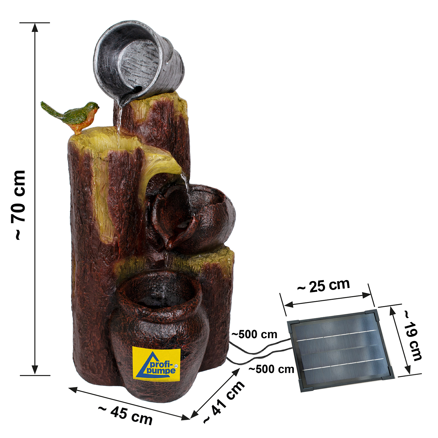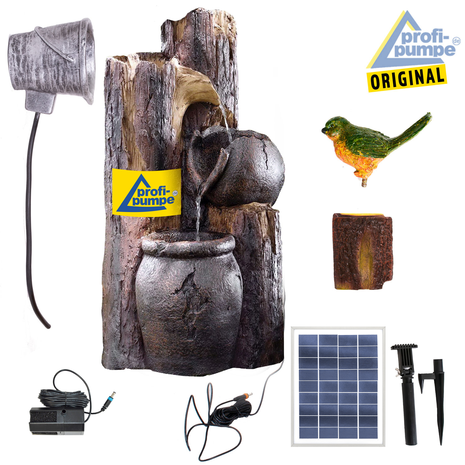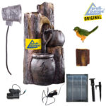 Solar – Brunnen Wasserspiel “BAUMSTUMPF & TONKRÜGE-3” mit Li-Ion-Akku & LED-Licht (Neu)